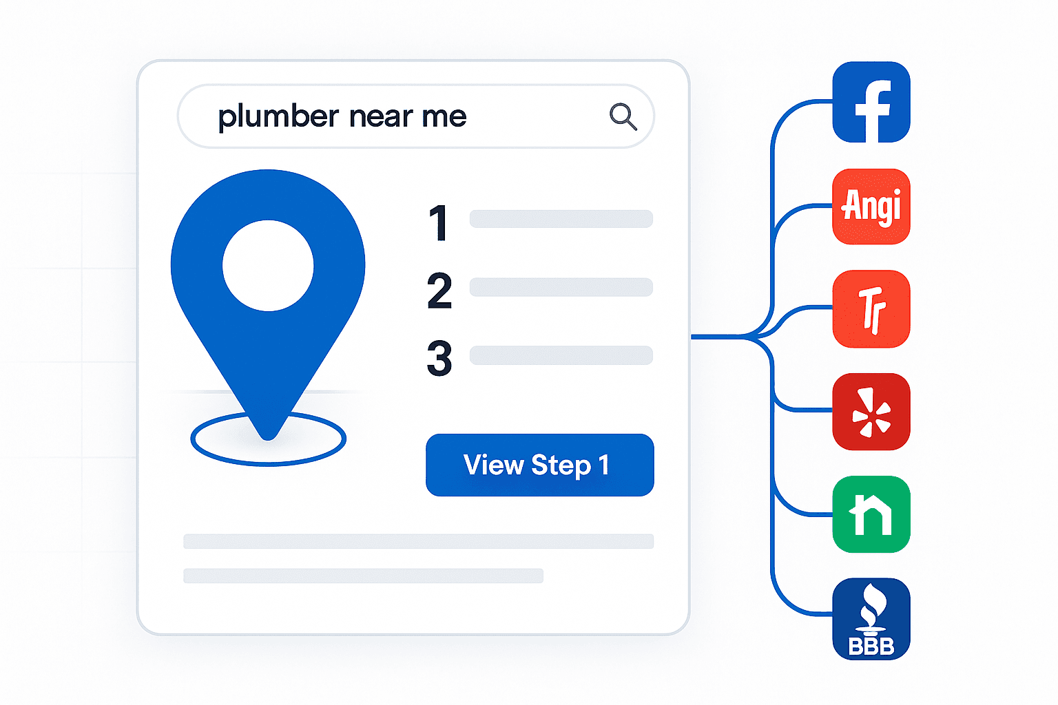 We check that your Name, Address, and Phone (NAP) info is consistent across critical sites like Yelp and Angi to build Google's trust in your business.